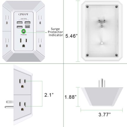Wall Charger, Surge Protector, QINLIANF 5 Outlet Extender
